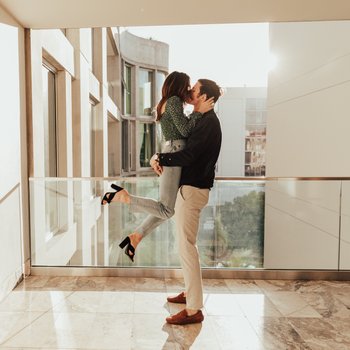 We met for the first time our senior year of college when John was visiting Trinity for the weekend. We instantly connected and ended up having an epic dance party in the AD parking lot. A couple of years later, we reconnected when our very good mutual friend was visiting NYC. John waited a few months before finally asking Leslie out for drinks. We had our first date at Park Avenue Tavern in NYC and followed it up with many more sushi dinners and bagel breakfasts. We've been fortunate enough to travel all over the world together over the past 4 years from New York, to Little Compton, to Boston, to Peru, to Thailand and Cambodia, to Los Angeles, to our favorite place: Palm Springs. We moved from New York to Los Angeles in 2018, got Murray in 2019, engaged in 2020, added Fisher to our family in October 2020 while we waited out the pandemic, and finally we will now be married in 2022! Get your dancing shoes ready! Can't wait to see you all in the desert!